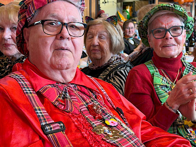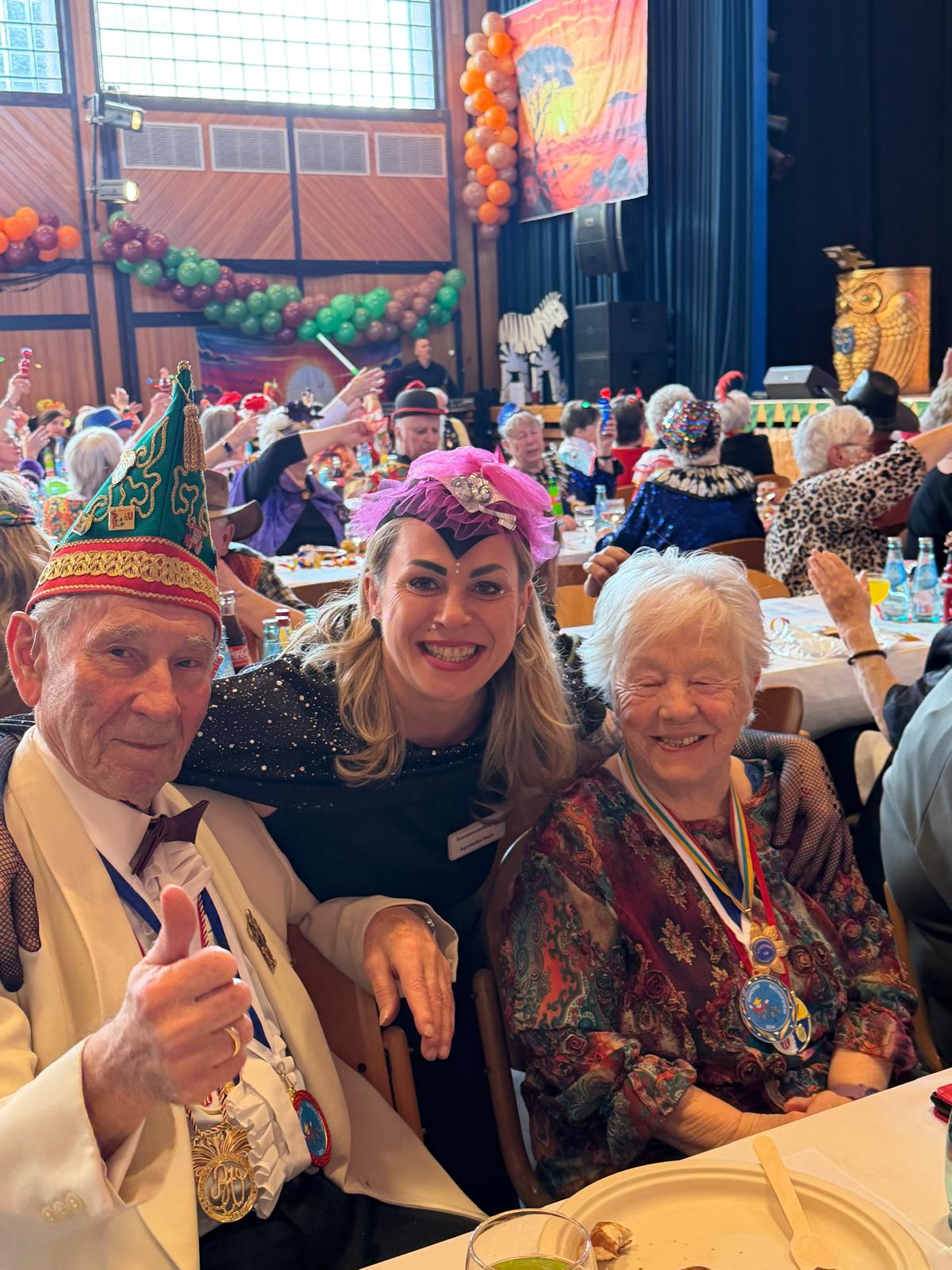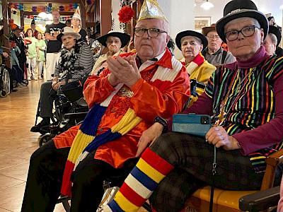 Der festlich geschmückte Saal war bis auf den letzten Platz gefüllt. Zahlreiche Bewohnerinnen und Bewohner, Mitarbeitende sowie viele externe Besucher und Angehörige nahmen teil. Alle waren fantasievoll verkleidet – sogar Herr Böttcher unser Heimleiter beteiligten sich aktiv an der Kostümierung, was zur fröhlichen und ausgelassenen Stimmung beitrug.