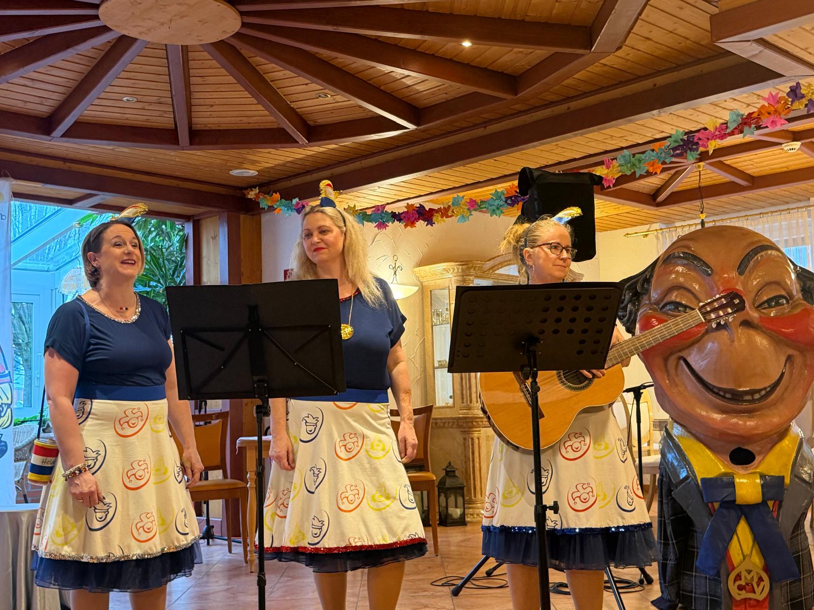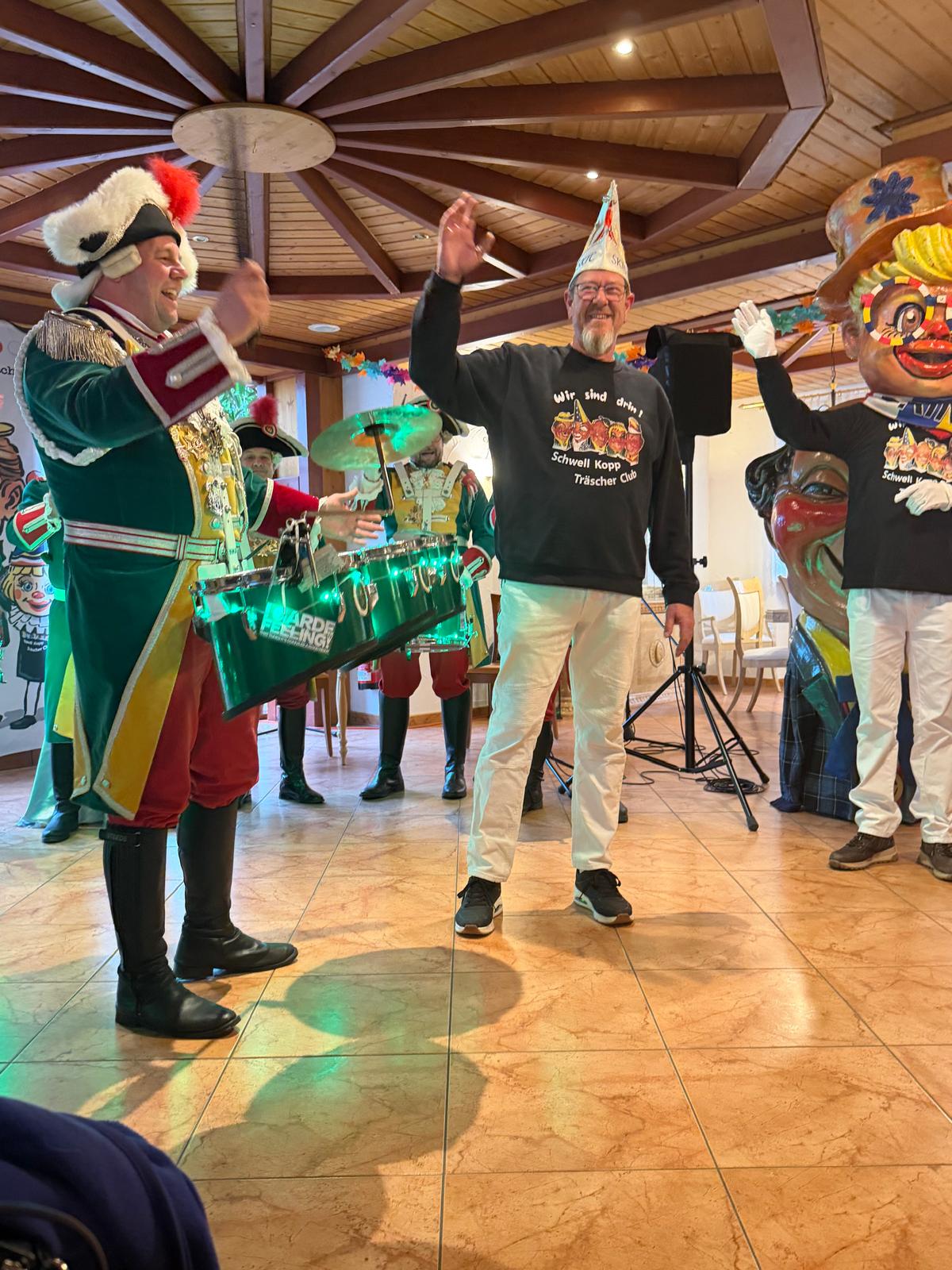 Ein besonderes Highlight war die Ausstellung der Schwellkopp schon am Abend vor der Veranstaltung. Zum Abschluss zogen sie nochmals durch den Saal und sorgten mit ihrem beeindruckenden Erscheinungsbild für große Emotionen und Begeisterung. Ein solches Erlebnis kennt man sonst nur von großen öffentlichen Fastnachtsveranstaltungen – umso außergewöhnlicher war es, dies in unserem Haus erleben zu dürfen.