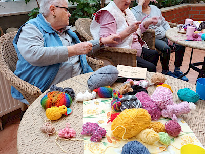 Bei uns gibt es seit Kurzem eine neue kreative Gruppe, die bereits großen Anklang findet: Unsere Strick- und Häkelgruppe unter der Leitung von Rosemarie Haus. Hier treffen sich Bewohnerinnen und Bewohner regelmäßig, um gemeinsam wunderschöne Handarbeiten zu fertigen, sich auszutauschen und gesellige Stunden zu verbringen.