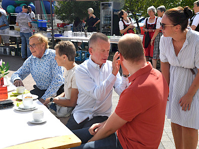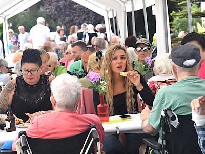 Auch für das leibliche Wohl war bestens gesorgt: Der Duft von gegrillten Köstlichkeiten und frisch gebackenen Waffeln lockte zahlreiche Gäste an die Stände. Die Plätze waren voll besetzt, Bewohnerinnen, Bewohner, Angehörige und Gäste aus Nah und Fern genossen die heitere Atmosphäre und das Beisammensein.