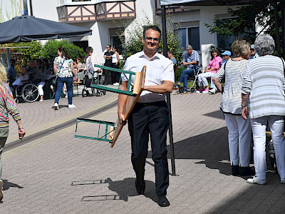 Ein besonderer Dank gilt dem gesamten Team des Sozialdienstes und den Mitarbeitenden des Seniorenparks, die tatkräftig bei Vorbereitung, Auf- und Abbau sowie während des Festes anpackten. „Das Miteinander und der Teamgeist waren großartig. Stress kam zu keinem Zeitpunkt auf", resümiert Agnieszka Haus. Nicht mal, als noch Tische und Bänke zusätzlich aufgestellt werden mussten, wobei Heimleiter Heiko Böttcher kräftig mitanpackte.