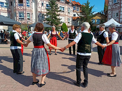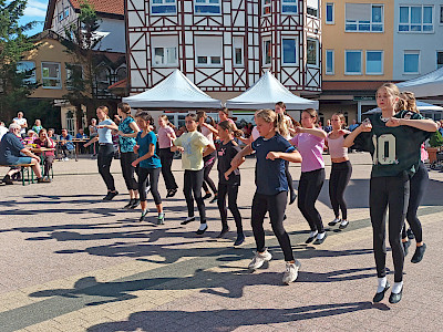 Im weiteren Verlauf begeisterte die Trommlergruppe Bateria Caipirinha mit packenden Rhythmen das Publikum und sorgte für Gänsehautmomente. Ebenfalls auf der Bühne standen die Landfrauentanzgruppe "Hessenschnicker" sowie die Kindertanzgruppe "Tanzteen", deren schwungvolle und fröhliche Darbietungen die Gesichter aller Anwesenden zum Strahlen brachten. Sänger und Zirkusartist Giovanni Weisheit rundete das Programm mit Musik und Jonglagen ab. Durch den Nachmittag führte Rolf Wittek, er sorgte mit Musik für eine angenehme Atmosphäre.