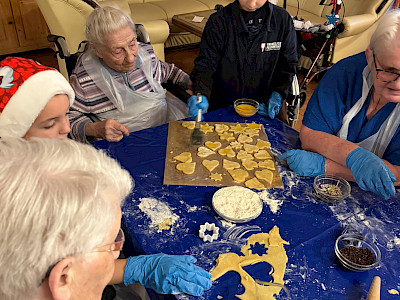 Die Kinder und die Bewohnerinnen und Bewohner des Seniorenhauses verbrachten einen abwechslungsreichen Nachmittag. Es wurden Gesellschaftsspiele gespielt, selbstgebastelte Fensterbilder überreicht und gemeinsam Plätzchen gebacken.
