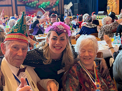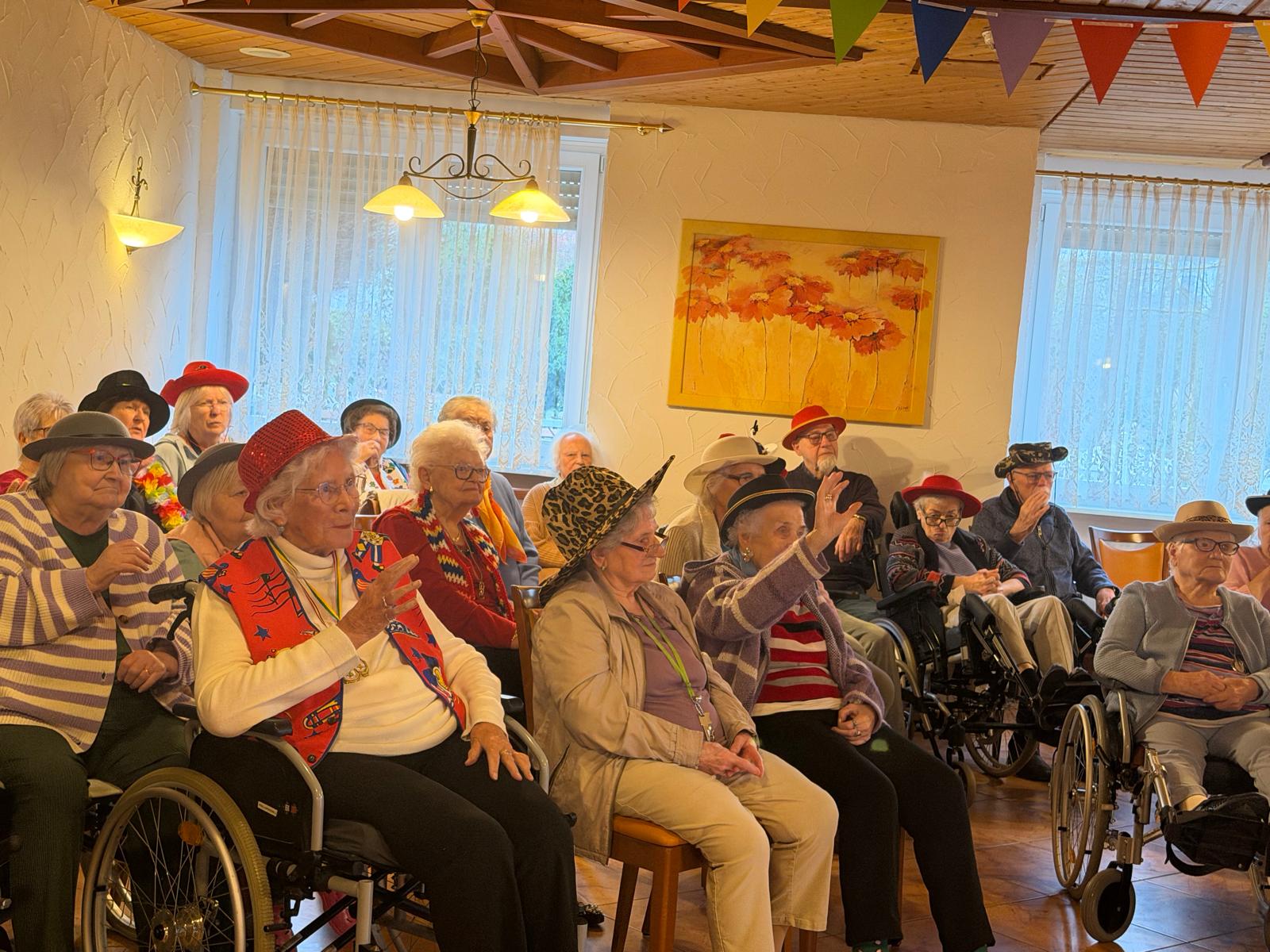 Der festlich geschmückte Saal war bis auf den letzten Platz gefüllt. Zahlreiche Bewohnerinnen und Bewohner, Mitarbeitende sowie viele externe Besucher und Angehörige nahmen teil. Alle waren fantasievoll verkleidet – sogar Herr Böttcher unser Heimleiter beteiligten sich aktiv an der Kostümierung, was zur fröhlichen und ausgelassenen Stimmung beitrug.