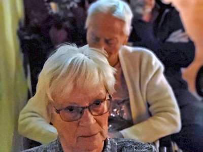 Im Anschluss daran folgte die gemeinsame Bescherung, die vor allem bei unseren Bewohnerinnen und Bewohnern für strahlende Augen sorgte. Danach wurde zusammen mit den Angehörigen zu Abend gegessen. Das Haus war an diesem Abend bis auf den letzten Platz gefüllt – ein lebendiges Bild von Gemeinschaft, Nähe und Miteinander. Überall sah man lachende Gesichter, hörte angeregte Gespräche und spürte eine besondere Verbundenheit.