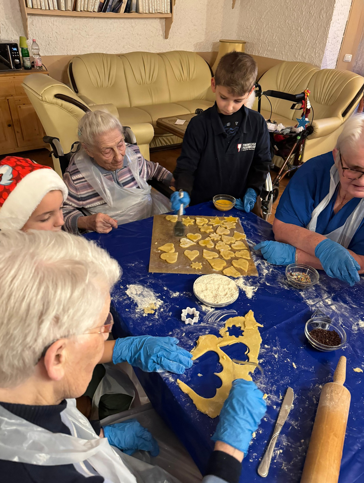 Die Kinder und die Bewohnerinnen und Bewohner des Seniorenhauses verbrachten einen abwechslungsreichen Nachmittag. Es wurden Gesellschaftsspiele gespielt, selbstgebastelte Fensterbilder überreicht und gemeinsam Plätzchen gebacken.