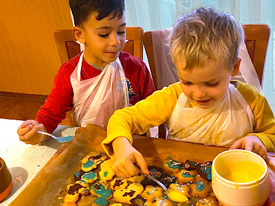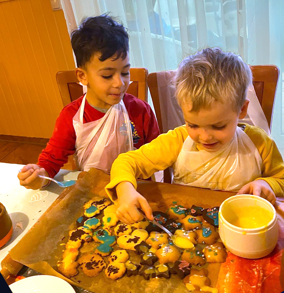 An mehreren Tischen wurde Teig ausgerollt, ausgestochen und liebevoll verziert. Die Senioren gaben ihre besten Tipps weiter – von der richtigen Teigdicke bis hin zu traditionellen Formen und Mustern. Die Kinder verteilten mit Begeisterung bunte Streusel, Schokolade und Zuckerguss.